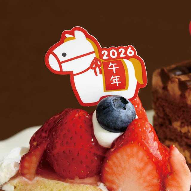 2026年の干支、午(うま)デザインの限定ケーキピックです。ケーキにさすだけでお正月を盛り上げてくれるケーキピックです。