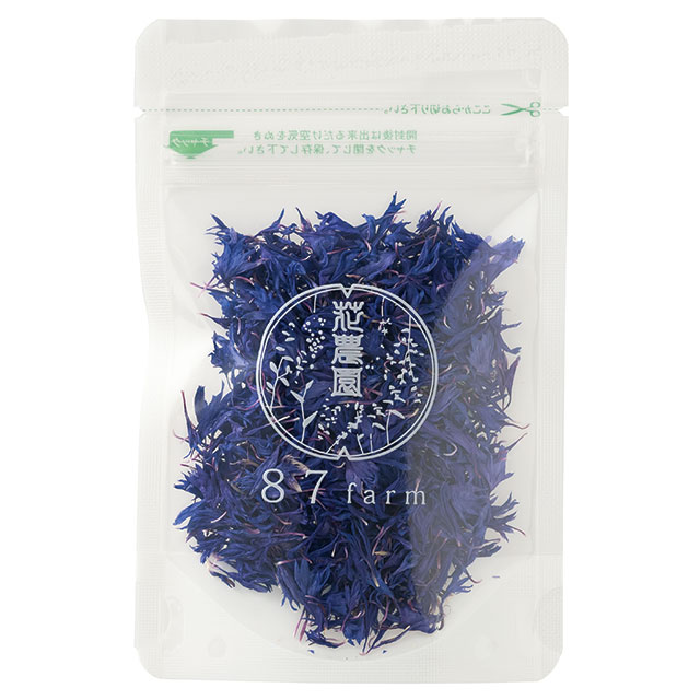 農薬不使用の国産エディブルフラワー(ドライタイプ)です。鈴鹿山脈から琵琶湖へと流れる豊かな地下水で育ったコーンフラワー(矢車菊)を使用。水耕栽培工場による量産品ではなく、畑でひとつひとつ人の手で丁寧に育てられているため、季節や気候による自然ならではの色合いや変化をお楽しみいただける唯一の食用花です。花のサイズが小さいので、ケーキやお菓子に華やかさを添えながらも、味や食感の邪魔をしません。ドライタイプのエディブルフラワーなので、長期間保存でき、管理がしやすいのもポイントです。