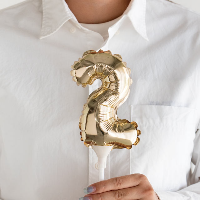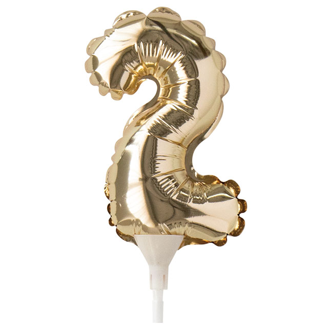 数字の「2」の形をしたゴールドのミニバルーンフラワーピックです。誕生日や周年祝いなど特別な日を華やかに彩るフラワーアレンジメントやブーケに、豪華な輝きをプラス。手軽に取り入れられてSNS映えもする魅力的なバルーンフラワーピックです。