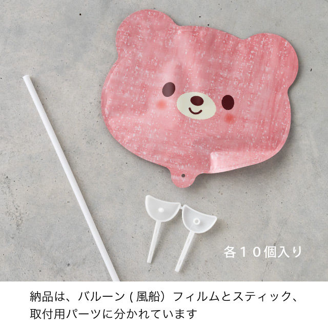 バルーン内部の膨らみ部分を強く押しつぶすと気体が発生して膨らみます。バルーンが十分に膨らんでからパーツをセットしてください。