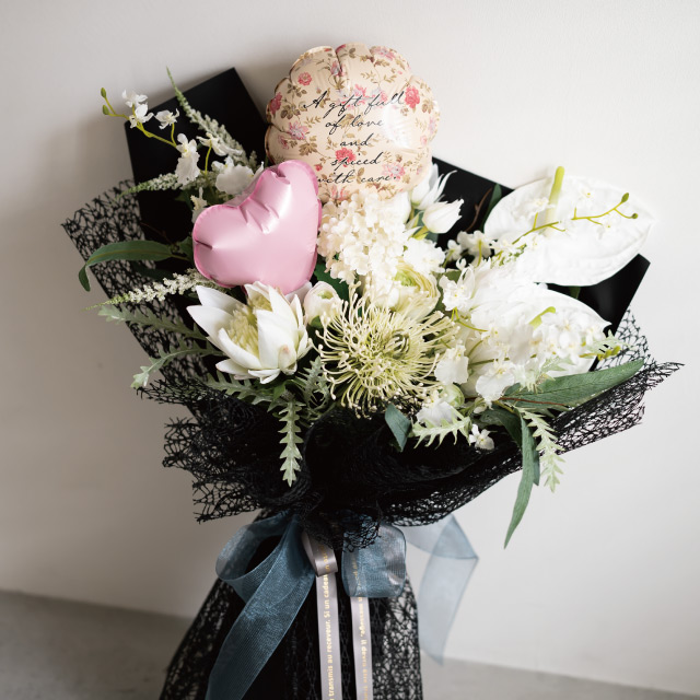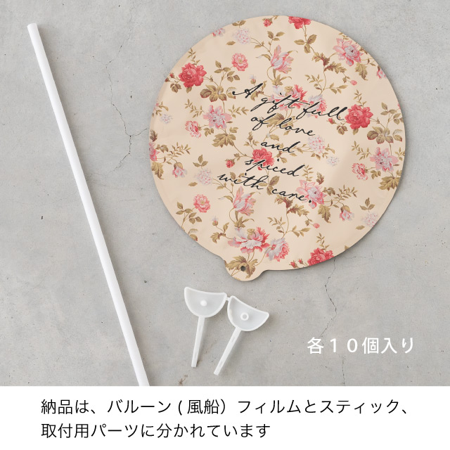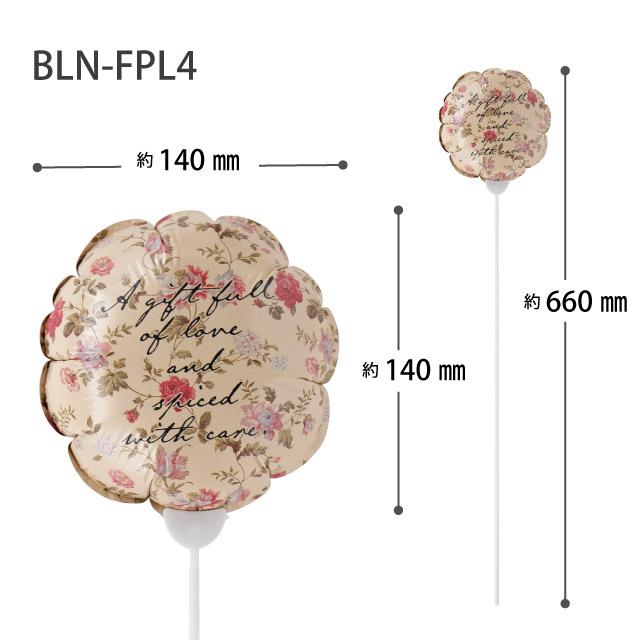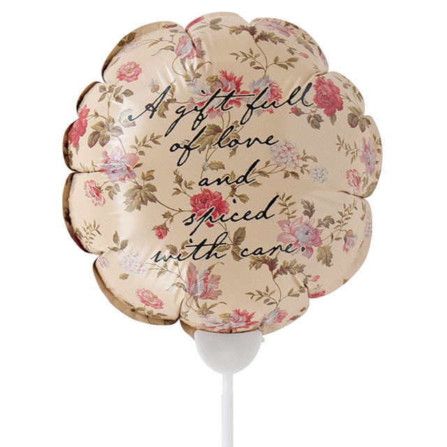 ヴィンテージ調の花柄がおしゃれなバルーンフラワーピックです。縦横140mmサイズで存在感たっぷり。少ない花材でもボリュームのある可愛いブーケが仕上がります。発表会や入学卒業、バースデー、成人式などのお祝いシーンや、母の日などのイベントにおすすめのバルーンピックです。
