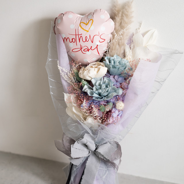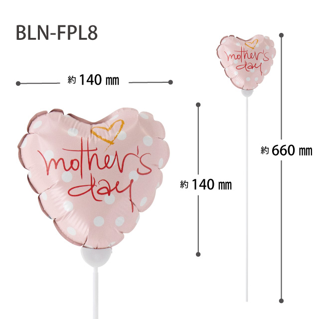 ピンクドットに「mother's day」のメッセージをあしらったキュートなバルーンフラワーピックです。縦横140mmサイズで存在感たっぷり。少ない花材でもボリュームのある可愛い母の日ブーケが仕上がるバルーンピックです。