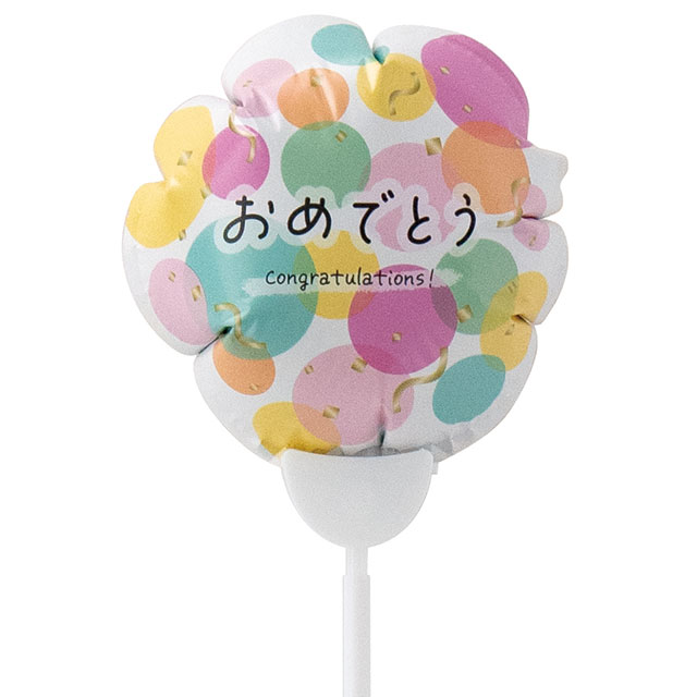 パステルカラーの水玉デザインに「おめでとう」のメッセージをあしらった丸型のバルーンフラワーピックです。ブーケやフラワーアレンジメントにはもちろん、焼き菓子セットやギフトボックスにも差し込むだけでボリューム感のあるラッピングが完成。ふんわりかわいいデザインで、ベビー、入学卒業、バースデーなどお祝いのシーンやイベントにおすすめのバルーンピックです。