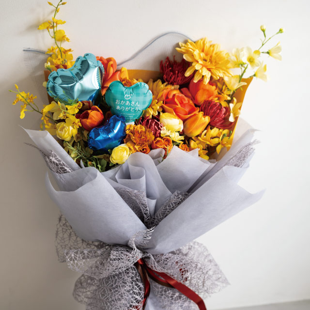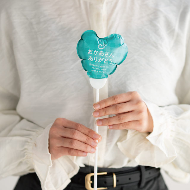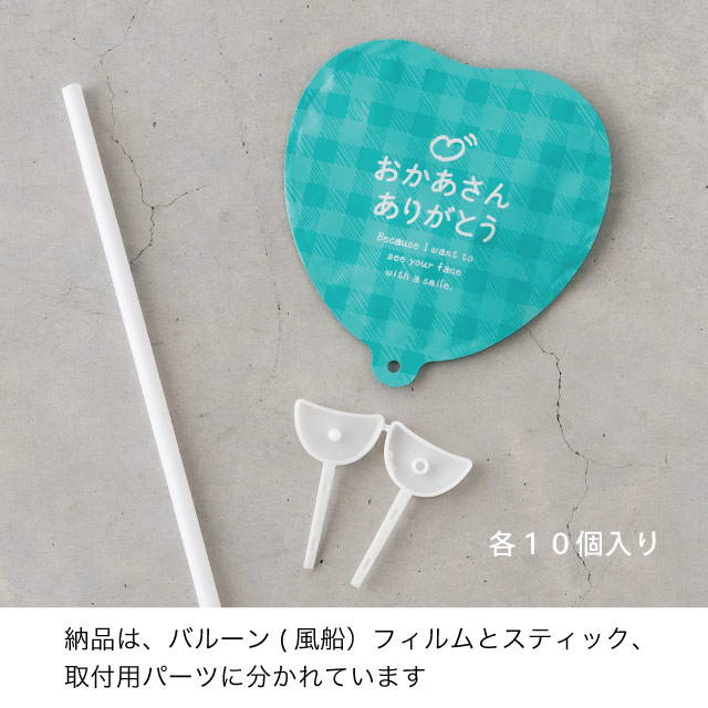 ブルーのギンガムチェックに「おかあさんありがとう」のメッセージをあしらったハート型の母の日バルーンフラワーピックです。お花の代わりにバルーンピックでボリューム感のあるブーケに!W85×H80mmのほどよいサイズ感と明るいブルーで母の日のブーケのキュートなアクセントになるバルーンピックです。