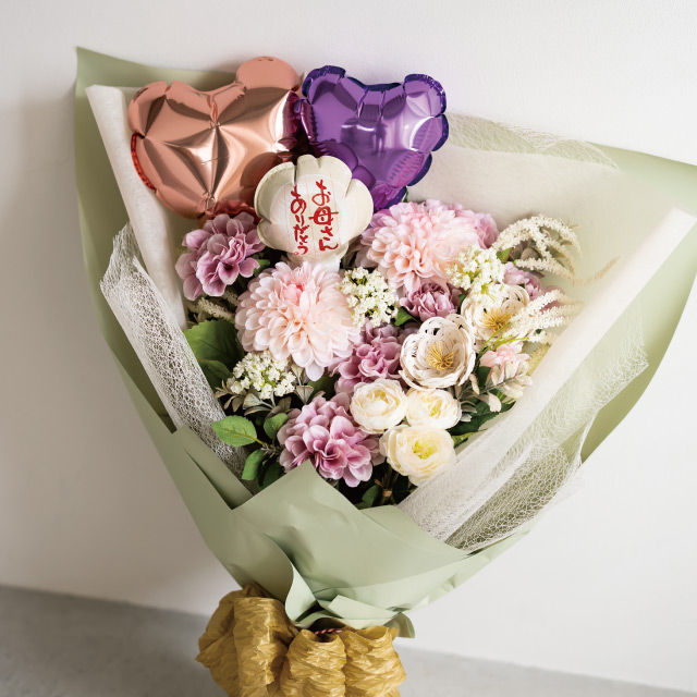 縦横140mmで存在感があり、これひとつでボリューム感と華やさがアップ!カラーバリエーションも豊富で、お花に合わせたカラーをお選びいただけます。光沢がある無地タイプなので他のバルーンピックとも組み合わせやすく、SNS映えバツグンの目を引くブーケ作りがお楽しみいただけます。