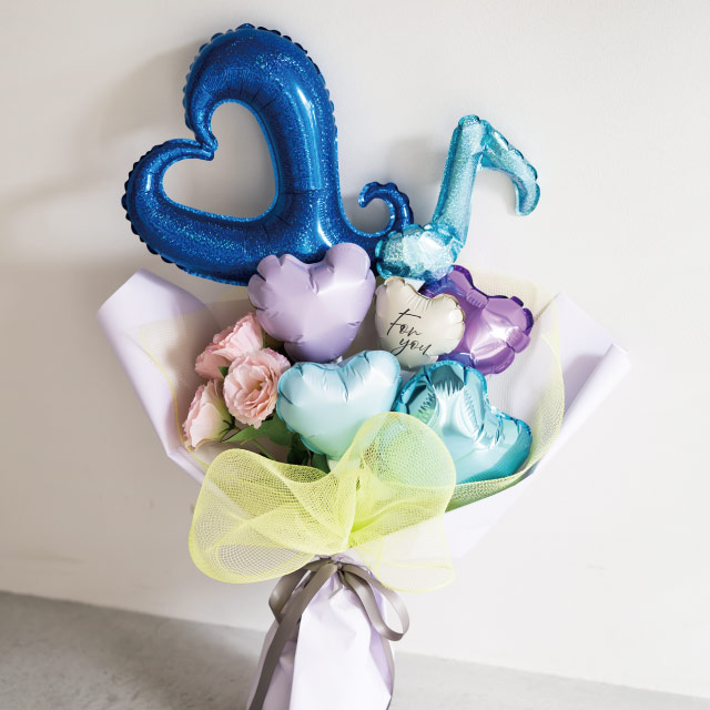 ペールモーブのハート型バルーンフラワーピックです。縦横110mmで存在感があり、これひとつでボリューム感と華やさがアップ!落ち着いたパステルカラーでどんなお花にも自然に馴染みやすく、ふんわりと優しい印象のブーケに仕上がります。無地タイプなのでバルーンピックとも組み合わせやすく、SNS映えバツグンの目を引くブーケ作りがお楽しみいただけます。