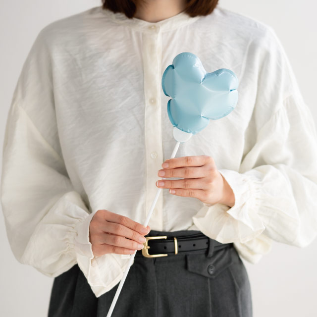 ペールブルーのハート型バルーンフラワーピックです。縦横110mmで存在感があり、これひとつでボリューム感と華やさがアップ!落ち着いたパステルカラーでどんなお花にも自然に馴染みやすく、ふんわりと優しい印象のブーケに仕上がります。無地タイプなのでバルーンピックとも組み合わせやすく、SNS映えバツグンの目を引くブーケ作りがお楽しみいただけます。