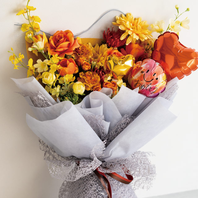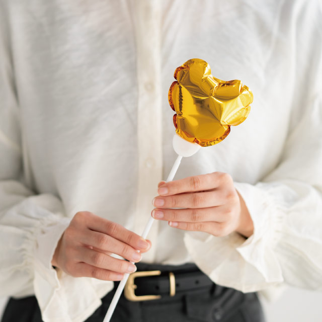 ゴールドのハート型バルーンフラワーピックです。W85×H80mmの程よい存在感で、これひとつでボリューム感と華やさがアップ!カラーバリエーションも豊富で、お花に合わせたカラーをお選びいただけます。光沢がある無地タイプなので他のバルーンピックとも相性が良く、SNS映えバツグンの目を引くブーケ作りがお楽しみいただけます。