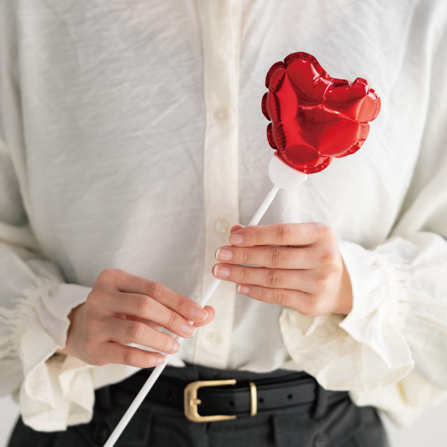 レッドのハート型バルーンフラワーピックです。W85×H80mmの程よい存在感で、これひとつでボリューム感と華やさがアップ!カラーバリエーションも豊富で、お花に合わせたカラーをお選びいただけます。光沢がある無地タイプなので他のバルーンピックとも相性が良く、SNS映えバツグンの目を引くブーケ作りがお楽しみいただけます。