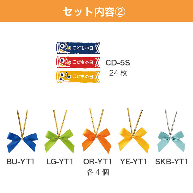 イベント資材は余ると困る!そんなお客様のお声から生まれた、こどもの日ギフトにおすすめのラッピング資材セットです。アニマル柄のOPP袋2サイズに、カラフルなワイヤータイ(5色)と鯉のぼりデザインのこどもの日シールがセットになったお得なギフトラッピングです。1回の購入で資材が揃う、便利なラッピングセットをぜひお試しください。