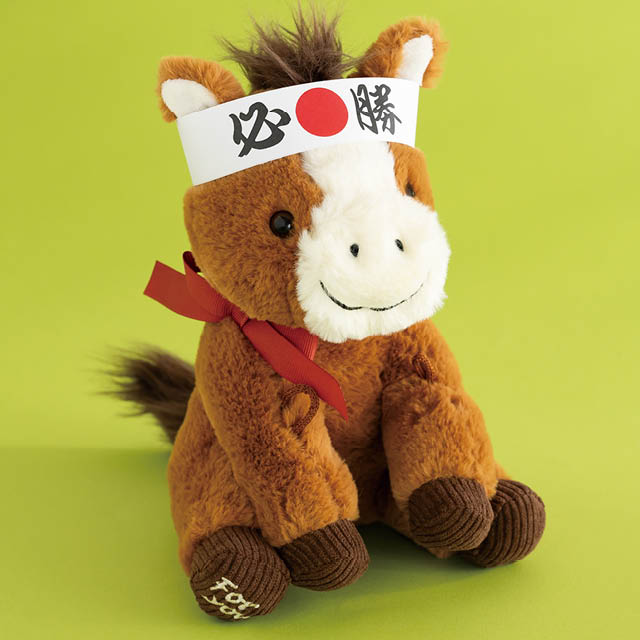ポニーのぬいぐるみです。名前は「パフィ」。 手についた輪っかにリボンを通せば、簡単に抱きつきラッピングが完成です。2026年は午年!思わず抱きしめたくなる小さなポニーのぬいぐるみで迎春ギフトを作ってみませんか?