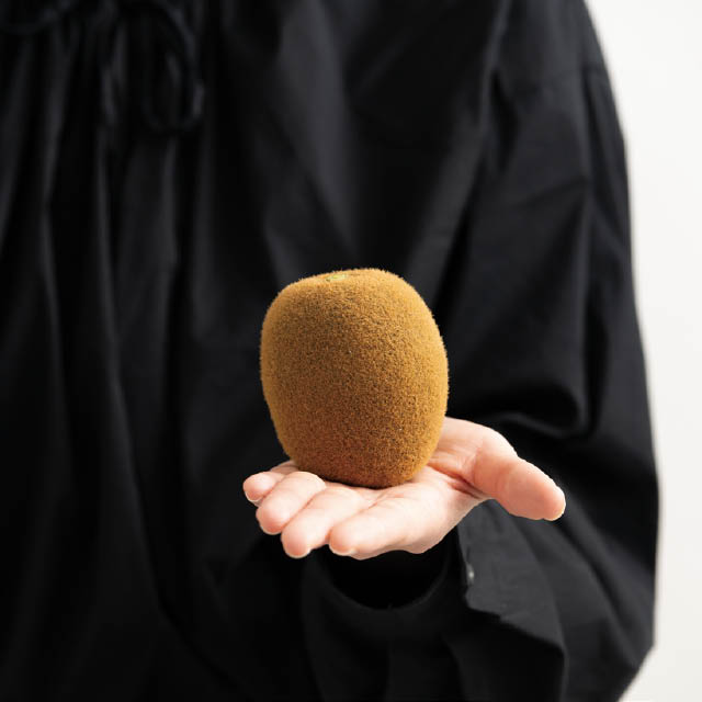 キウイの食品サンプル(フェイクフルーツ)です。W60×D45×H80mmサイズで、思わず目を引くリアルな仕上がり。発泡スチロール製で軽量なので設置や移動も簡単。棚やショーケースなど、場所を選ばずディスプレイが可能です。
