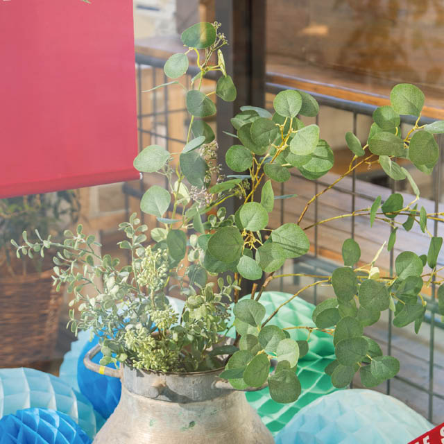 スプレータイプのユーカリの造花です。ユーカリ特有の丸い葉を模した繊細なディテールで、リアルな質感を再現しました。1本の茎から自然に枝分かれしたデザインで、ボリューム感もたっぷり。存在感のあるW400×H1060mmサイズで、花器に挿すだけで店内が華やかになります。シンプルなデザインなので、他の造花と組み合わせてアレンジするのもおすすめです。季節を問わず通年使えるアイテムとして、ショップのディスプレイやお部屋のインテリアなど、様々なシーンにお使いいただけるユーカリの造花です。