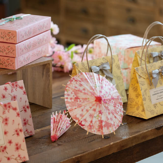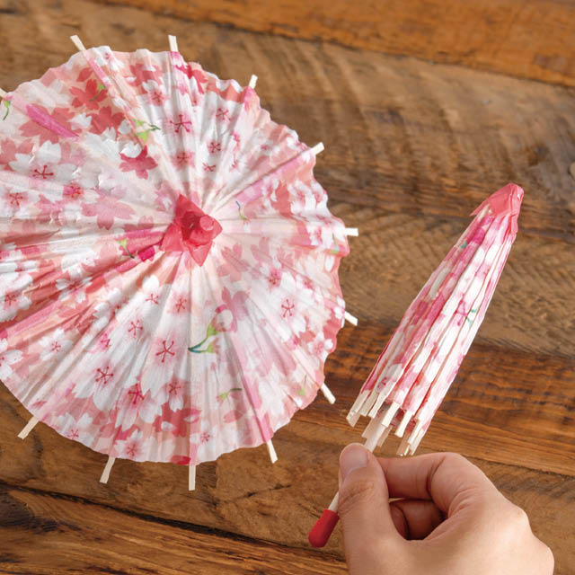 鮮やかなピンク色の桜模様が華やかな店内装飾用の和傘です。直径200mmのミニサイズなので小さめの売り場や、レジ横やカウンター周りにもぴったり。鮮やかな桜柄で春の売り場を華やかに飾ってくれます。春のギフトシーズンはもちろん、インバウンド向けのディスプレイにもおすすめです。