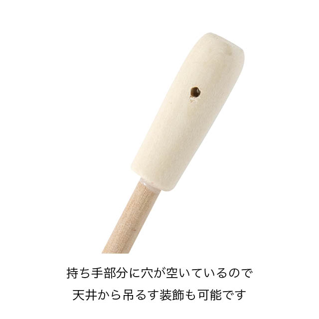 持ち手部分には糸を通す穴があり天井から吊るす装飾もできるので、売り場面積を選ばずお使いいただけます。