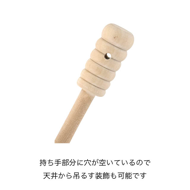 持ち手部分には糸を通す穴があり天井から吊るす装飾もできるので、売り場面積を選ばずお使いいただけます。