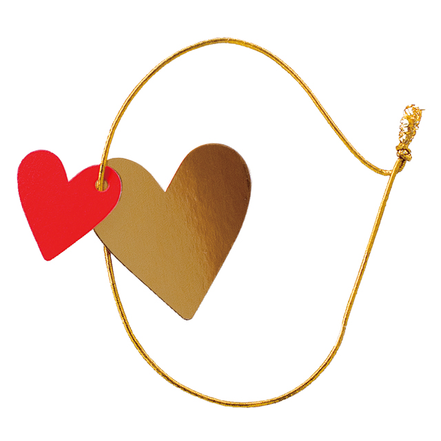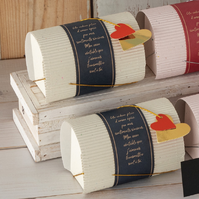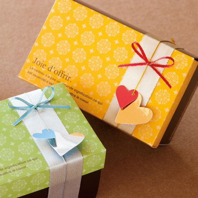 さりげないハートがギフトのアクセントになります。両面印刷なので、同じ色同士を表にしてシンプルに仕上げることもできます。