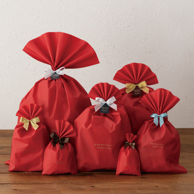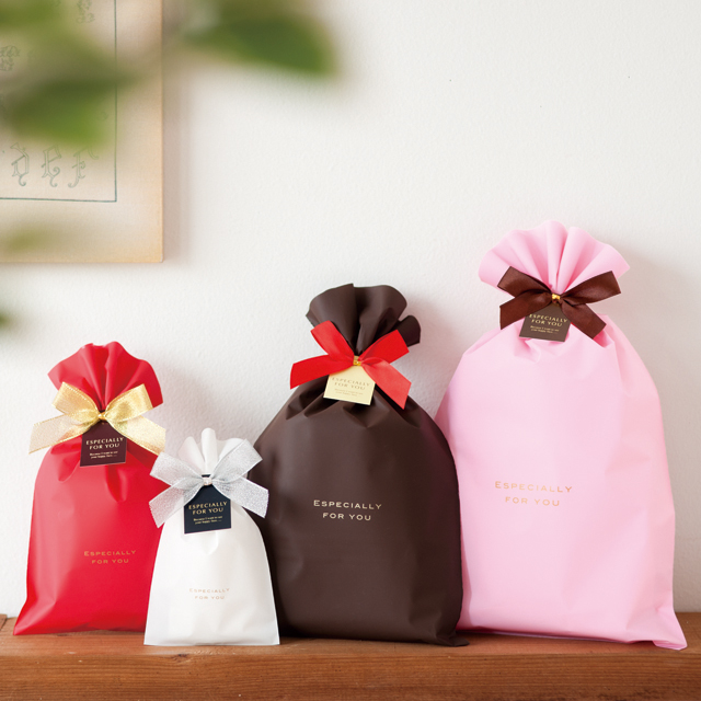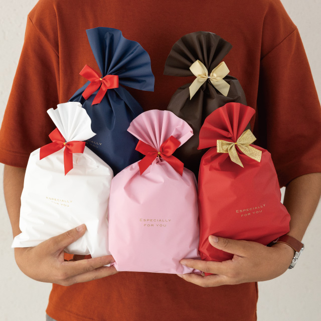 マットな質感で手触りのよいラッピング袋です。落ち着いた質感がどんなギフトにもぴったり。サイズも豊富なので色々な大きさの商品を扱うお店様にオススメです。中身が透けにくい点もポイント!