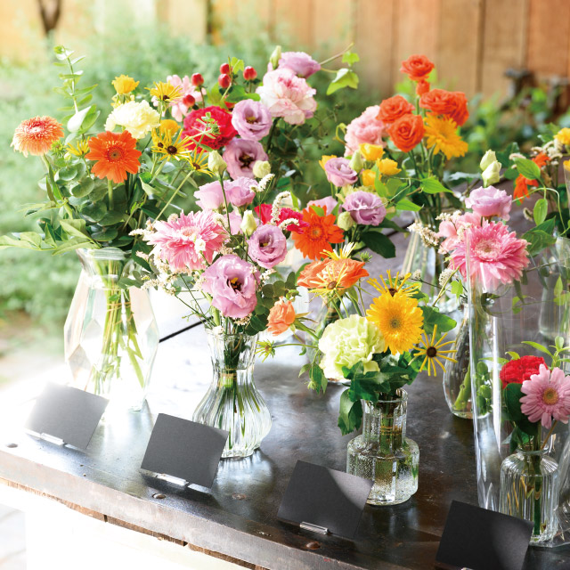 ガラスフラワーベース(花瓶)は販売しやすい価格でギフトにプラスαができるうえ、種類もサイズもカラーも豊富に揃えられるので選ぶ楽しさもアップします。花瓶と切花を合わせてセット販売もおすすめ。透明クリアバッグに入れてディスプレイすれば、店頭に華やかさをプラスし、更にSNS映えもバッチリ。インテリア雑貨としてもおすすめです。