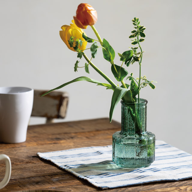 ガラスフラワーベース(花瓶)は販売しやすい価格でギフトにプラスαができるうえ、種類もサイズもカラーも豊富に揃えられるので選ぶ楽しさもアップします。花瓶と切花を合わせてセット販売もおすすめ。透明クリアバッグに入れてディスプレイすれば、店頭に華やかさをプラスし、更にSNS映えもバッチリ。インテリア雑貨としてもおすすめです。