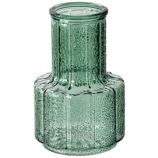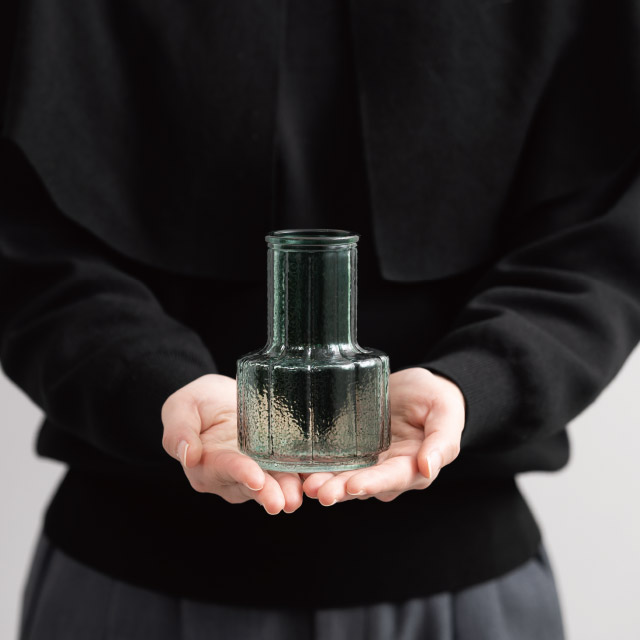 凹凸のテクスチャー感がおしゃれなグリーンのフラワーベースです。色ガラス製で中が見えづらいため、お水の汚れも目立ちません。