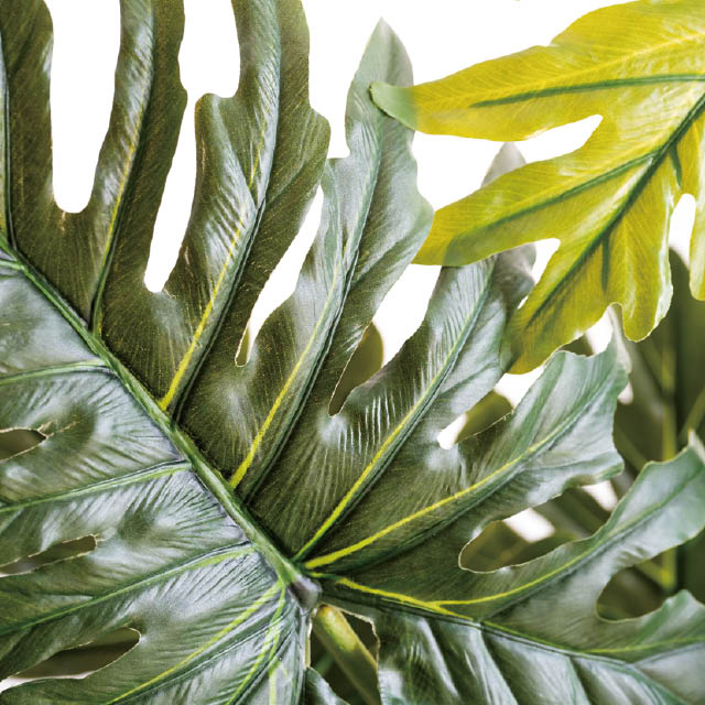 セロムの造花です。プラスチック製の鉢とセットになった完成品なので、置くだけで簡単にディスプレイできます。フェイクグリーンだから水やりやお手入れの手間も一切不要。いつでも美しい状態を保てるため、忙しい店舗や施設でも安心してご利用いただけます。サイズはW1400×D930×H840mmで目を引く大きめサイズ。本物そっくりの存在感で、ロビーやエントランスなどを手軽にグレードアップさせてくれます。飲食店やショップ、待合スペースの他、オフィスグリーンにも最適。幅広いシーンでの空間演出や装飾アイテムとしておすすめのセロムの造花です。