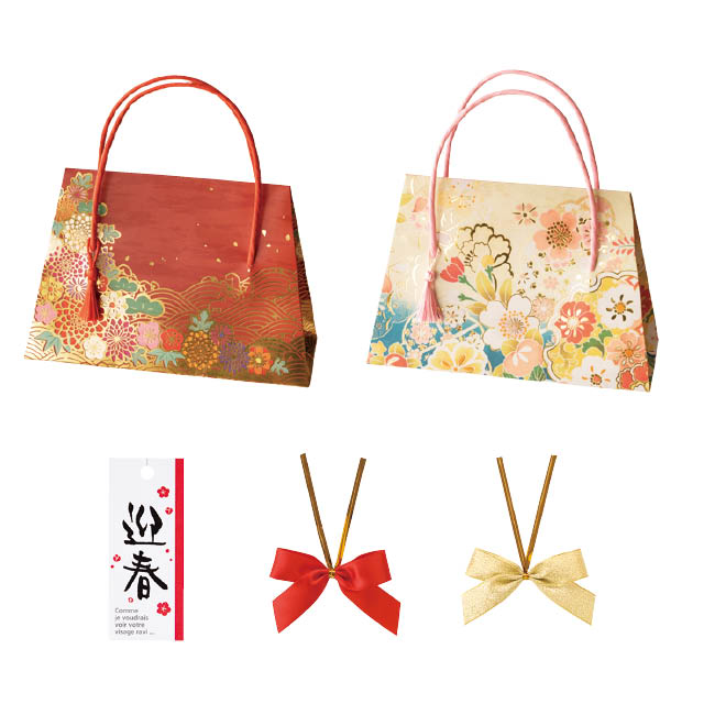 イベント資材は余ると困る!そんなお客様のお声から生まれた、お正月におすすめのラッピング資材セットです。着物柄のフラップバッグ2デザインとワイヤータイ2種、タグがセットになったお得なギフトラッピングセットです。1回の購入で資材が揃う、便利な迎春ラッピングセットをぜひお試しください。