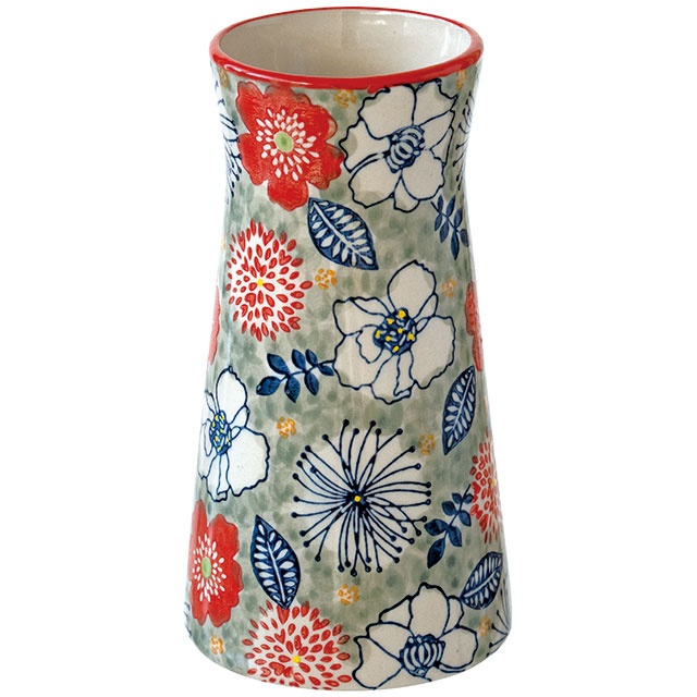 ハンドメイドの手書き風の柄が可愛い、陶器のフラワーベース(花瓶)です。ミニブーケや一輪挿しにピッタリでテーブルやキッチンに飾りやすいサイズです。ハンドル付きのパッケージにセットしていますので、そのまま飾って雑貨として販売していただけます。 「花を買いたいけど家に花瓶がない」「花を贈りたいけど、花瓶は持ってるかな?」と言うお客さまにも、お花を身近に感じてもらえるアイテムです。