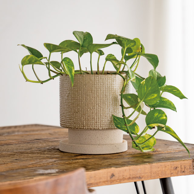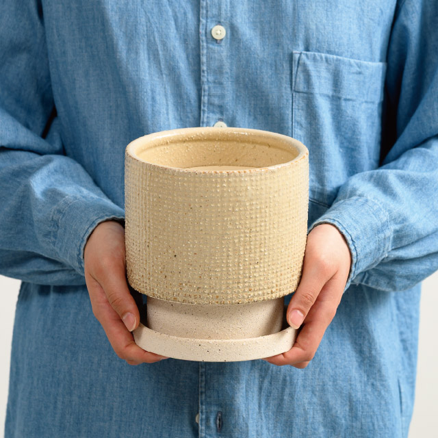 上品なアイボリーカラーの陶器鉢(4号サイズ)です。植物本来の美しさを引き立てるデザインで、どんなグリーンとも相性抜群。素朴であたたかみのある質感は、お部屋やベランダに自然に溶け込み、グリーンコーディネートに最適です。受け皿付きで水やりの管理も簡単。日常使いはもちろん、ギフト用や定番のグリーンアレンジにも幅広く活用できる陶器鉢です。