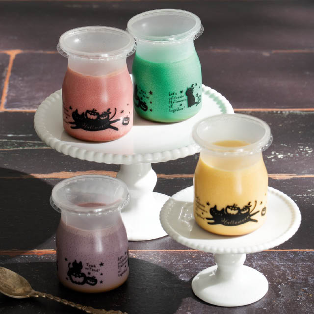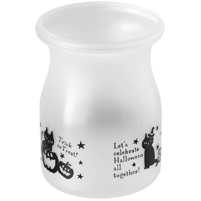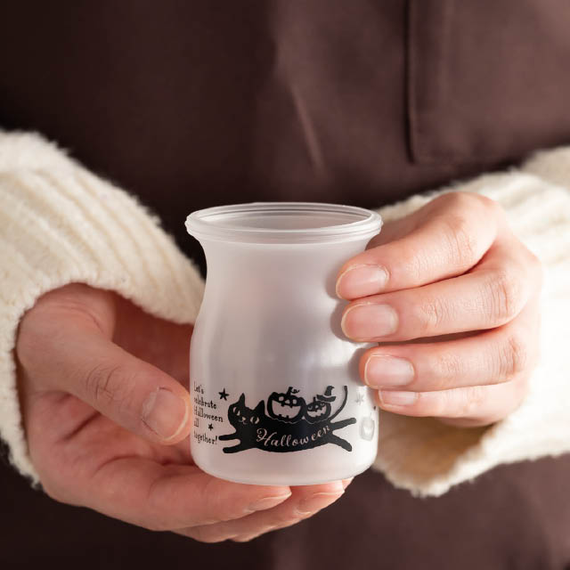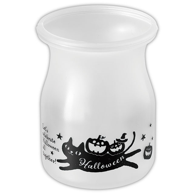 湯煎可能なデザートカップにハロウィン限定のデザインが出ました!牛乳瓶のような形が可愛く、プリンにおすすめのカップです。カップにぴったり合うフタ(M-LID23)もご用意しております。