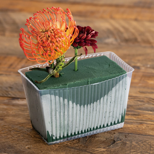 四角形の透明インナーカップです。フローラルフォーム1/4サイズのアレンジメントにおすすめです。