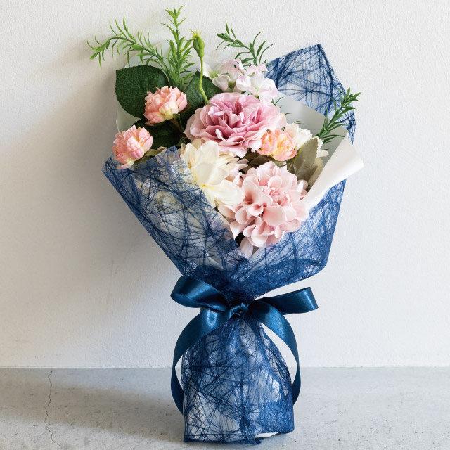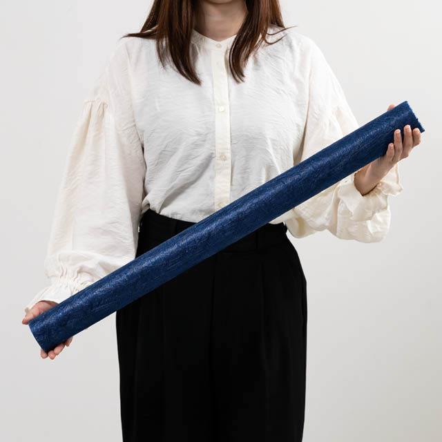レースのラッピングロールです。発色の良いネイビーが豪華な雰囲気で還暦や成人式など、お祝いごとの花束や鉢物におすすめです。単体で包んだり、PEや紙など異素材のロールとあわせたり、ポイントにあしらったり、多彩に活躍する「カンタン・キレイ・ベンリ」なラッピングロールです。