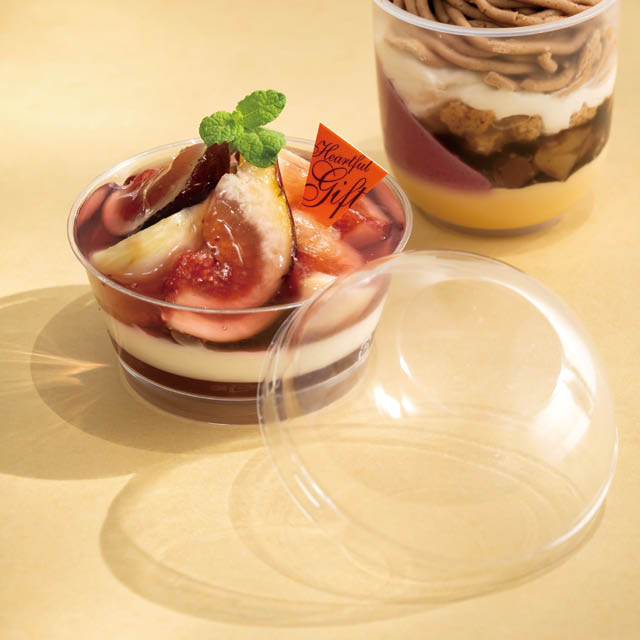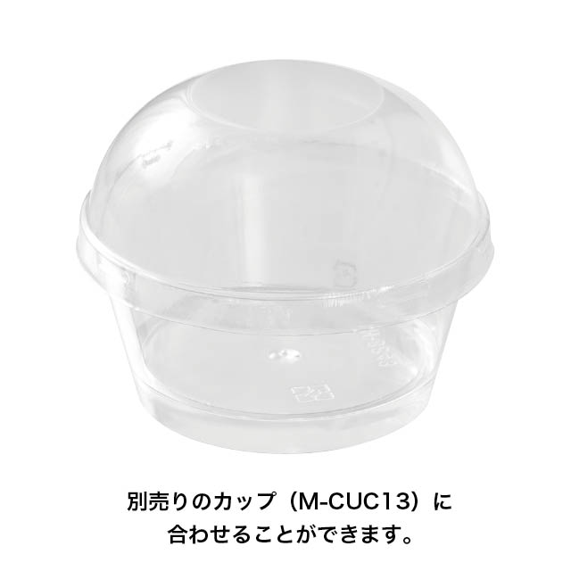 デザートカップ-13(M-CUC13)にお使いいただけるフタです。中身の乾燥や、テイクアウト時のくずれを防ぎます。