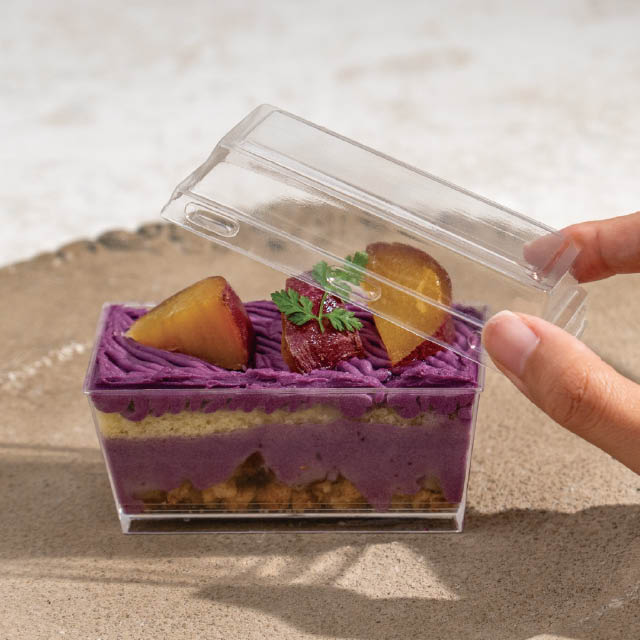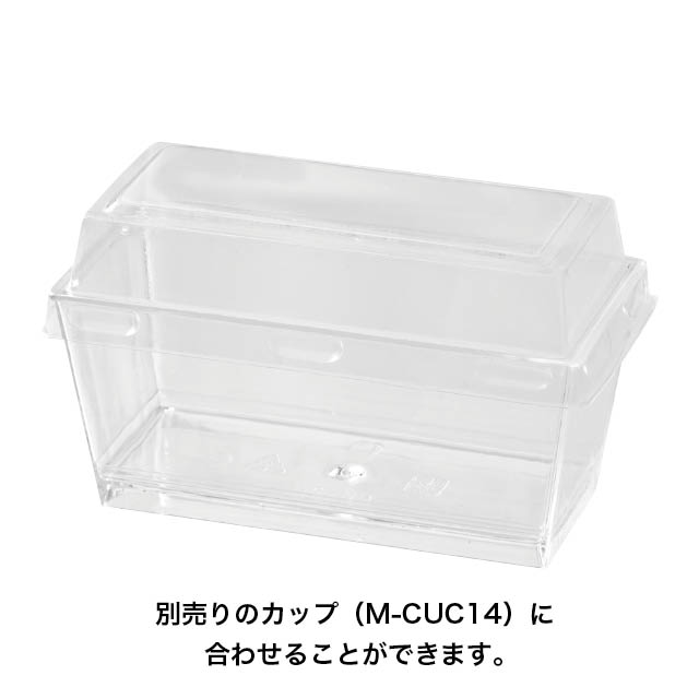 デザートカップ-14(M-CUC14)にお使いいただけるフタです。中身の乾燥や、テイクアウト時のくずれを防ぎます。
