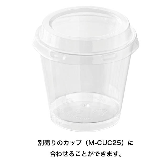 デザートカップ-25(M-CUC25)にお使いいただけるフタです。平らな作りなので、フタを閉じた状態で重ねてストックして置くことも可能です。
