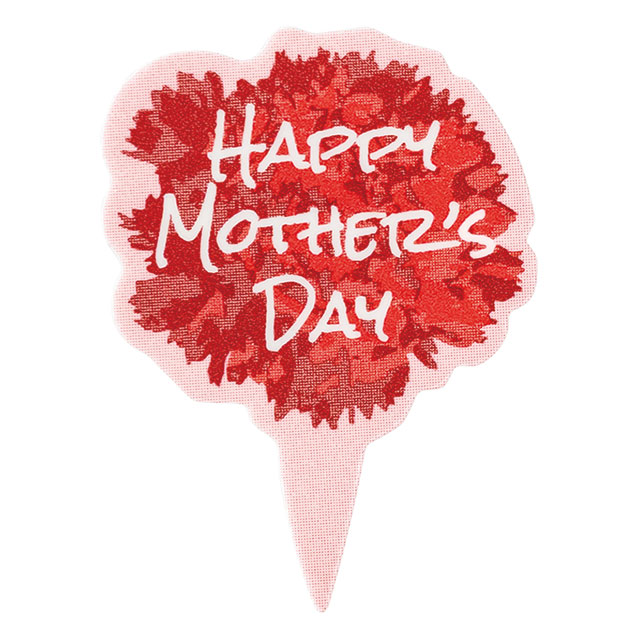 華やかな赤いカーネーションが目を引く母の日のケーキピックです。いつものカットケーキに添えるだけで母の日ケーキが作れます。