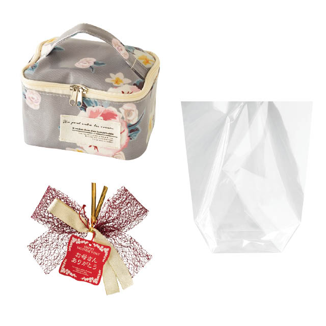 イベント資材は余ると困る!そんなお客様のお声から生まれた、母の日ギフトにおすすめのラッピング資材セットです。グレーのハンドル付ポーチにオリジナルワイヤータイ、OPP袋がセットになったお得なギフトラッピングです。タグ付きのボリュームのあるリボンワイヤータイはこのセットだけの限定品!1回の購入で資材が揃う、便利なラッピングセットをぜひお試しください。