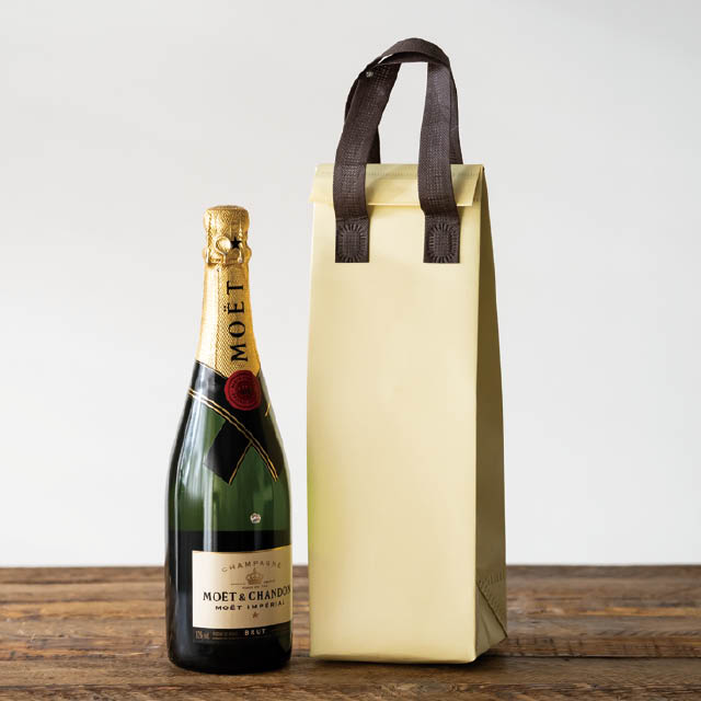 フルボトルが1本すっきりと収まるサイズで、ワインや日本酒、ジュースのお持ち帰りに最適。お買い上げ後はホームパーティーなどの手土産としてそのままお使いいただけます。酒屋さん、スーパー、お土産屋さん、道の駅など、幅広い店舗におすすめです。