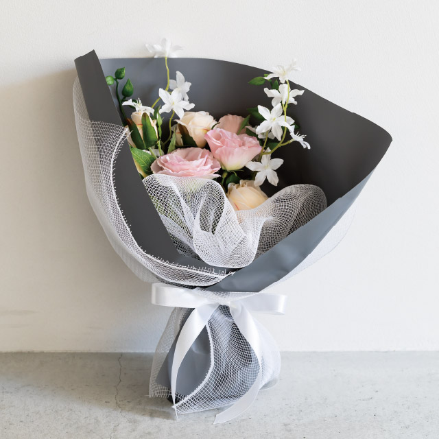 ホワイトのメッシュのラッピングロールです。適度なハリがある細かめのメッシュ地で、話題の韓国風ブーケ作りにぴったり。SNS映えやトレンドを押さえたおしゃれなブーケアレンジにおすすめです。もちろん、定番のブーケラッピングにも活躍。リーズナブルな価格帯も魅力です。ふんわりと包むだけで花束の華やかさを一層引き立て、お店のラッピングバリエーションを広げてくれるアイテムです。