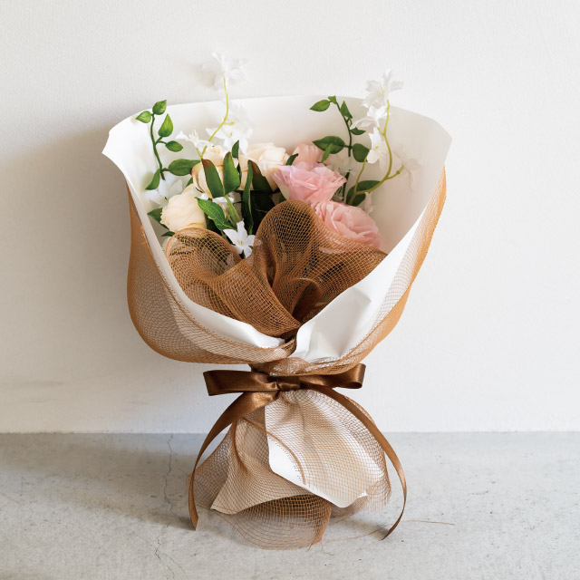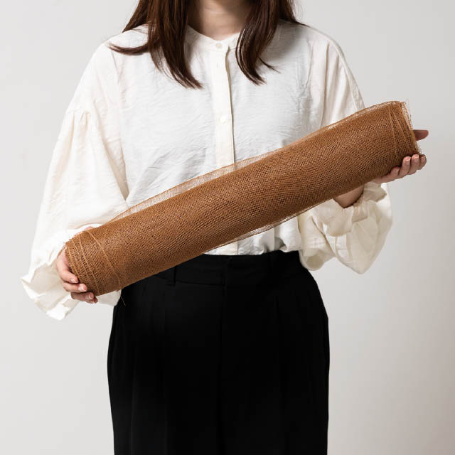 ライトブラウンのメッシュのラッピングロールです。適度なハリがある細かめのメッシュ地で、話題の韓国風ブーケ作りにぴったり。SNS映えやトレンドを押さえたおしゃれなブーケアレンジにおすすめです。もちろん、定番のブーケラッピングにも活躍。リーズナブルな価格帯も魅力です。ふんわりと包むだけで花束の華やかさを一層引き立て、お店のラッピングバリエーションを広げてくれるアイテムです。