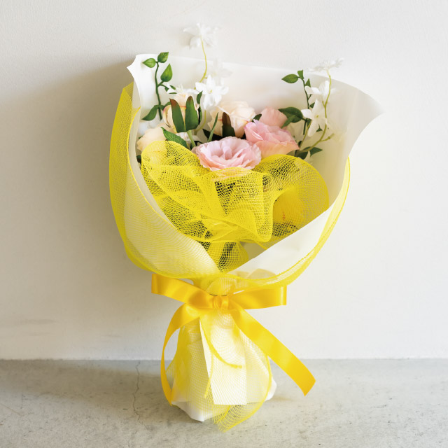 ライトイエローのメッシュのラッピングロールです。適度なハリがある細かめのメッシュ地で、話題の韓国風ブーケ作りにぴったり。SNS映えやトレンドを押さえたおしゃれなブーケアレンジにおすすめです。もちろん、定番のブーケラッピングにも活躍。リーズナブルな価格帯も魅力です。ふんわりと包むだけで花束の華やかさを一層引き立て、お店のラッピングバリエーションを広げてくれるアイテムです。