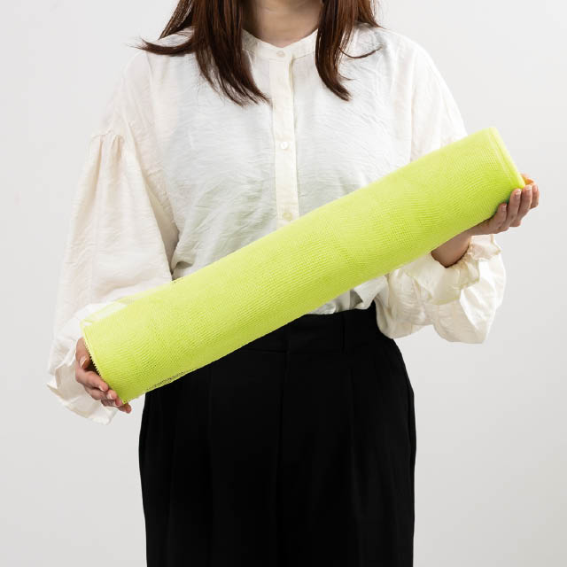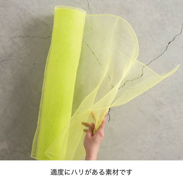 ライトグリーンのメッシュのラッピングロールです。適度なハリがある細かめのメッシュ地で、話題の韓国風ブーケ作りにぴったり。SNS映えやトレンドを押さえたおしゃれなブーケアレンジにおすすめです。もちろん、定番のブーケラッピングにも活躍。リーズナブルな価格帯も魅力です。ふんわりと包むだけで花束の華やかさを一層引き立て、お店のラッピングバリエーションを広げてくれるアイテムです。