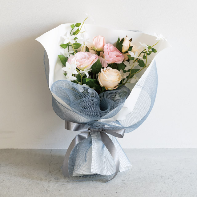 ライトグレーのメッシュのラッピングロールです。適度なハリがある細かめのメッシュ地で、話題の韓国風ブーケ作りにぴったり。SNS映えやトレンドを押さえたおしゃれなブーケアレンジにおすすめです。もちろん、定番のブーケラッピングにも活躍。リーズナブルな価格帯も魅力です。ふんわりと包むだけで花束の華やかさを一層引き立て、お店のラッピングバリエーションを広げてくれるアイテムです。
