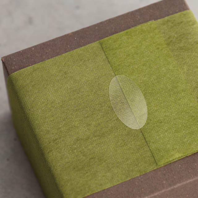 W35×H18mmサイズの楕円の透明シール(封緘シール)です。超強粘着タイプなので、不織布、オーガンジー、ワックスペーパーなどの剥がれやすい素材にもしっかりと貼れ、留めシールとして活躍します。