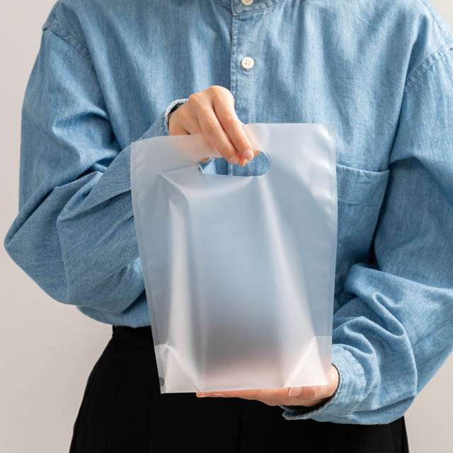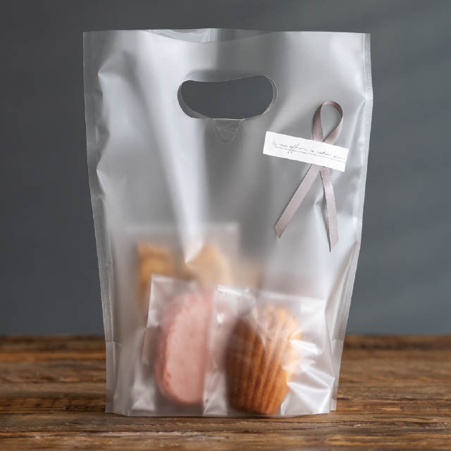 小判抜きの持ち手があり、底にマチがついているのでお持ち帰り袋としてもご活用いただけます。
