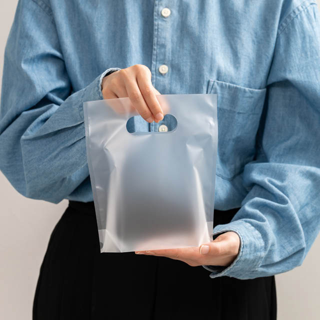 小判抜きの持ち手があり、底にマチがついているのでお持ち帰り袋としてもご活用いただけます。
