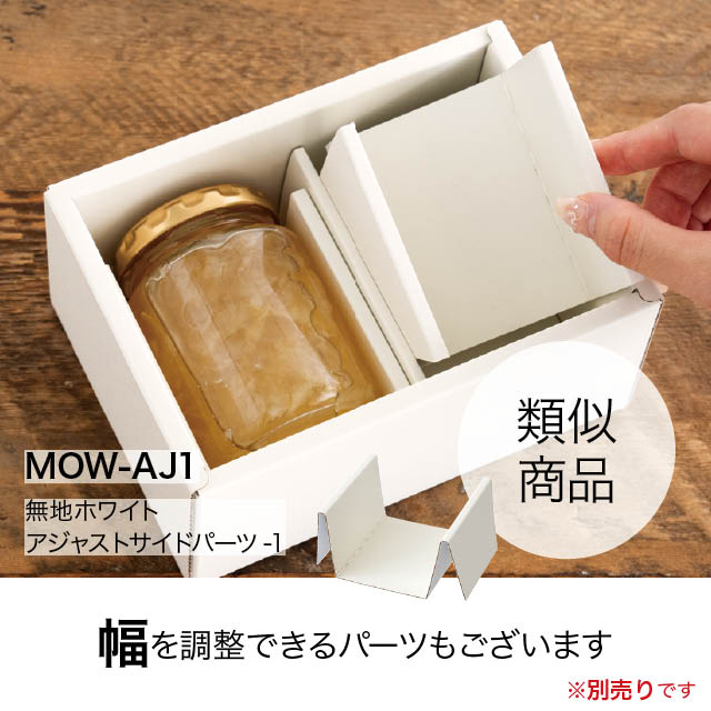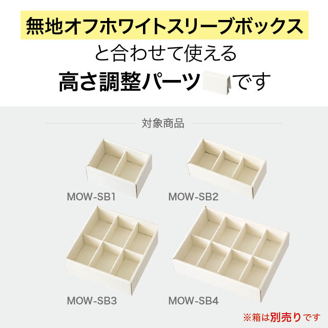 縦幅用の幅節パーツです。高さが違う瓶やボトルのセットアップギフトを作る時に縦幅のスキマを調節できるので、箱の中で動きにくくキレイにギフトを作ることができます。無地オフホワイトスリーブボックスと併せてお使いください。