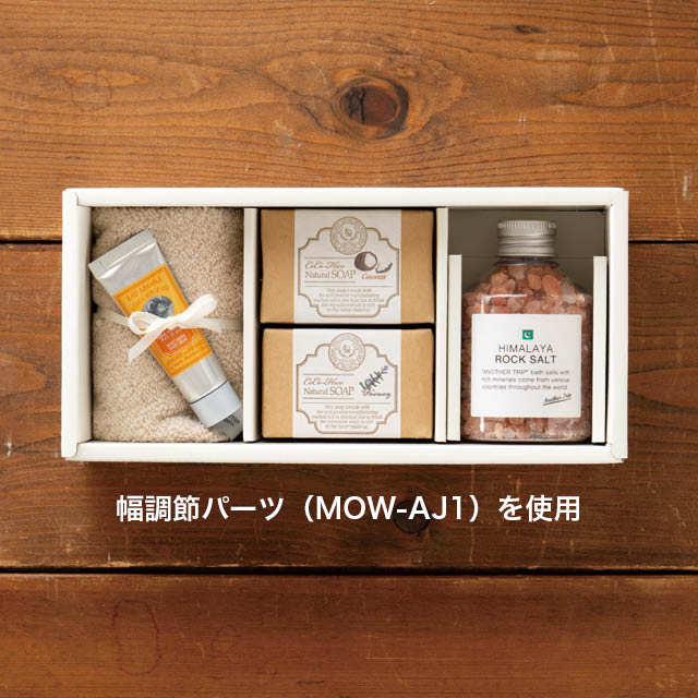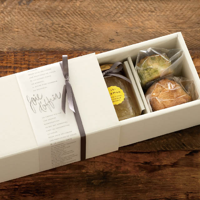 上品なオフホワイトは、合わせる掛け紙やリボンで高級ギフトにもナチュラルギフトにも変身し、様々なギフトシーンで活躍。お店のハンコやシールと組み合わせてオリジナル資材としてブランディングにご活用いただくのもおすすめです。