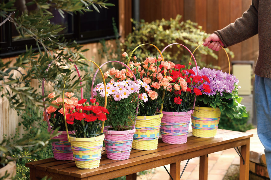 明るくカラフルな色味は並べると華やかな印象になります。店頭を盛り上げたい母の日やイベントの時にオススメです。