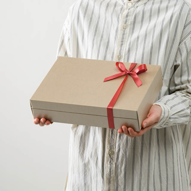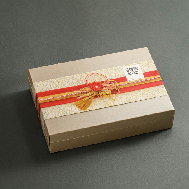 メタリックで光沢がありながらも品の良いベージュカラーで、お祝いのシーンにはもちろん、和洋菓子の詰め合わせ、その他雑貨ギフトなど、幅広くお使いいただけるギフトボックスです